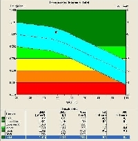 Wynik przedstawiony jest w formie wykresu i tabeli i podawany w g/cm2.