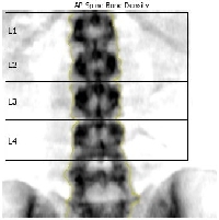 Wg zaleceń Międzynarodowego Stowarzyszenia Densytometrii Klinicznej (ang. International Society for Clinical Densytometry) z roku 2007 pomiar gęstości mineralnej kości (ang. BMD – Bone Mineral Density) kręgosłupa lędźwiowego L1 – L4 jest zalecany do łącznej oceny z wynikami morfometrycznym metodą DXA (VFA ang. Vertebral Fracture Assessment) oraz oceną klinicznych czynników ryzyka złamań. |