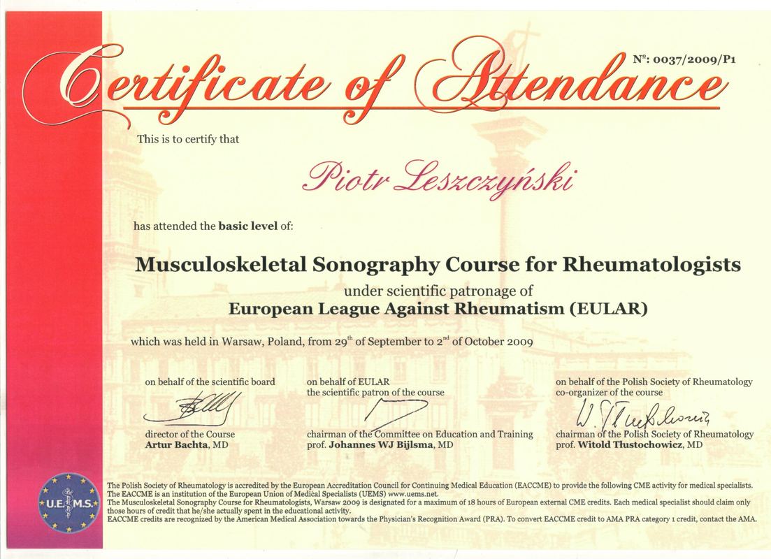 Ukończył kursy USG narządu ruchu: